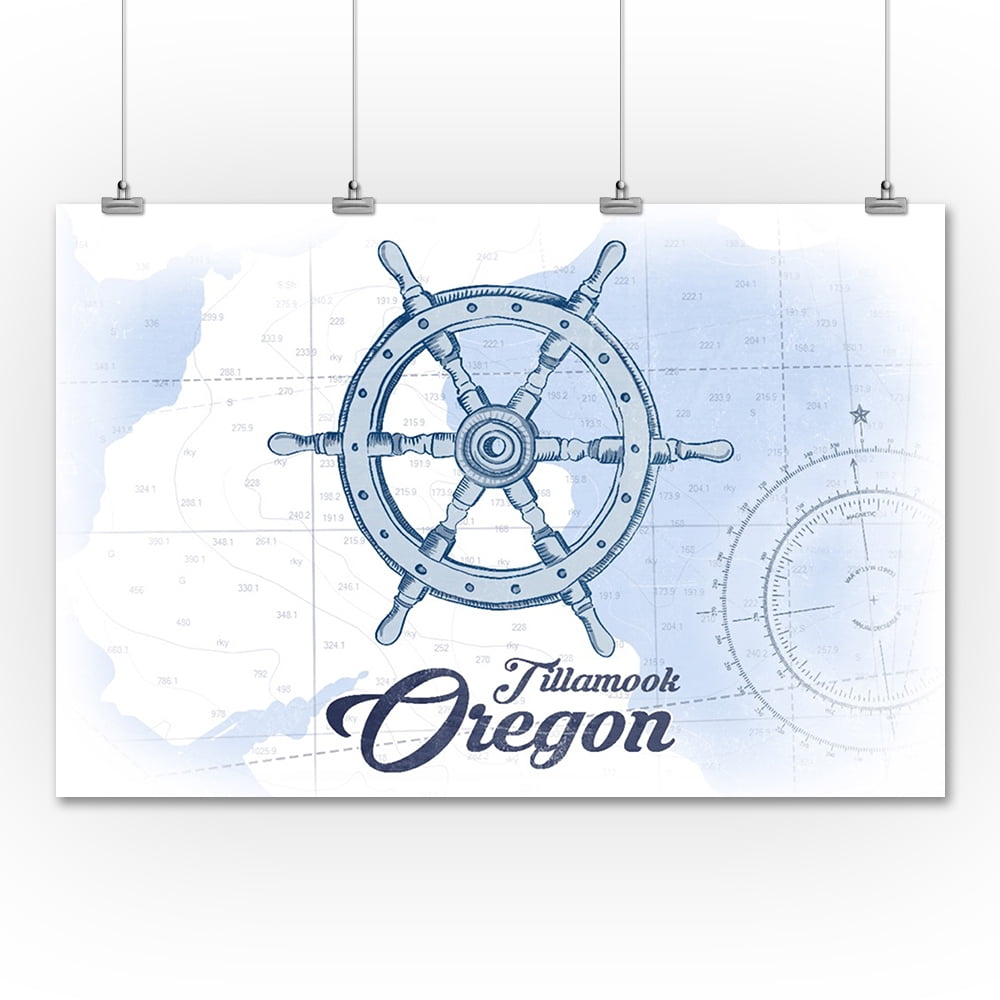 Tillamook Oregon Ship Wheel Blue Coastal Icon Lantern Press Artwork 24x36 Giclee Gallery Print Wall Decor Travel Poster Walmart Com